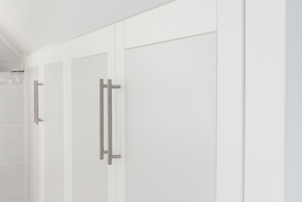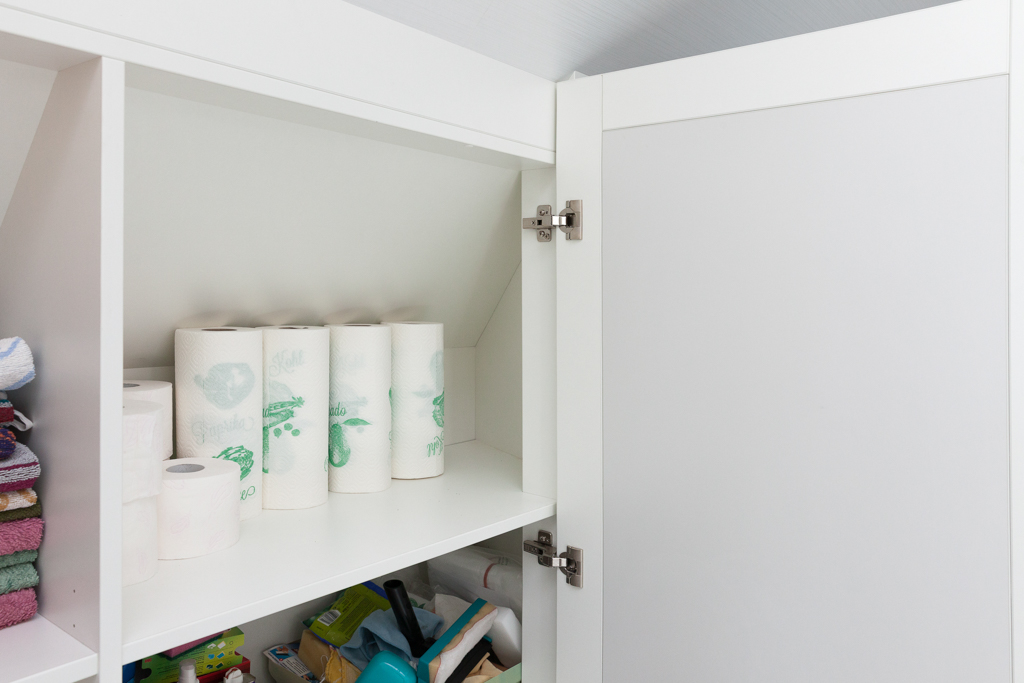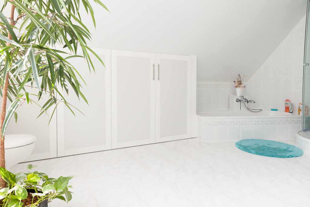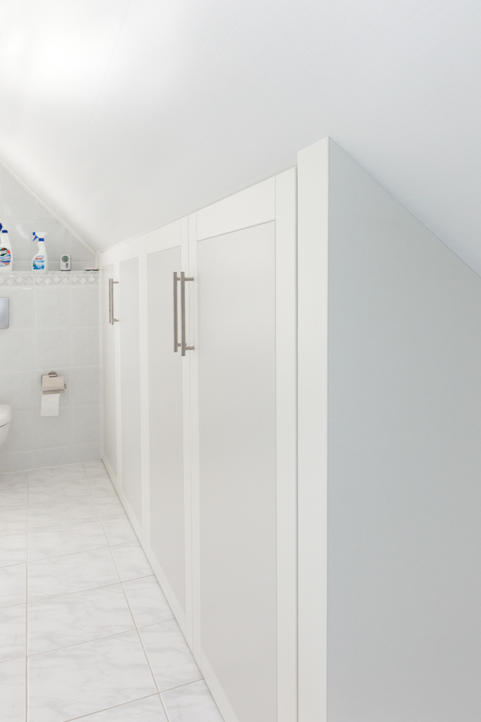 Referenz zweifarbiger Badezimmerschrank Pingel - farblich abgestimmter zweifarbiger Badezimmer Schrank - Einpassung an die Dachschräge « zurück zur Übersicht